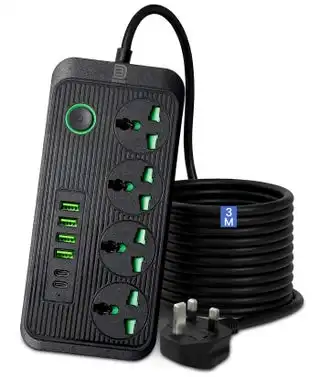 noon.com10 in 1 Power Strip with 4 AC Outlets, 4 USB‑A & 2 USB‑C Ports, Surge Protector, 3m Heavy-Duty Extension Cord, Overload Protection, Wall-Mountable Multi-Plug for Home, Office and Electronics (Black)