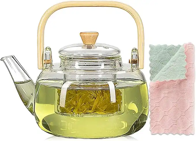 1000ml Glass Teapot With Glass Infuser, Teapot With Strainer For Loose Tea, Safe On Stovetop, Tea Pot With Bamboo Handle (1000ML/350Z) — Price History & Tracker | DeserTracker