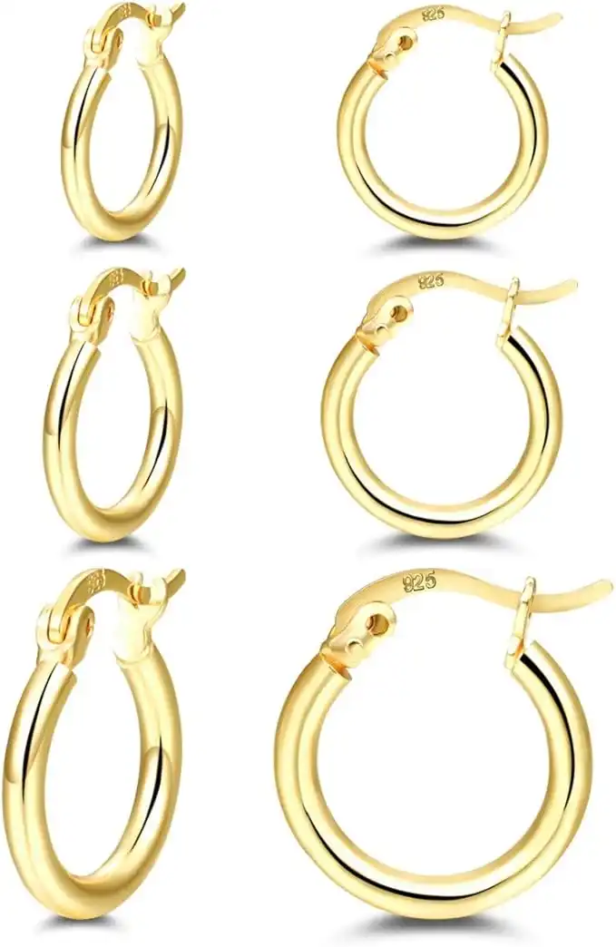 14K Gold Plated Hoop Earrings - 4 Pairs Sterling Silver Post Small Hoops| Gold Hoop Earrings Sets for Women Men (13mm 15mm 20mm 25mm) — Price History & Tracker | DeserTracker
