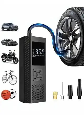 noon.com150 PSI Portable Tire Inflator & Air Compressor – Cordless, Fast Air Pump with LED Display, Pressure Gauge, USB Rechargeable, Auto Shutoff – for Car, Motorcycle, Bicycle, Balls – Compact & Durable with Multiple Nozzles