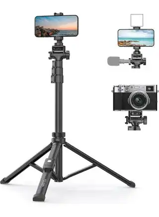 noon.com170cm Phone Tripod, Portable Phone Stand Tripod for Travel/Video Recording, Long Distance Remote Control, with 1/4'' Screw and Detachable phone clip, Compatible with iPhone/Android/Camera with 1/4'' Hole