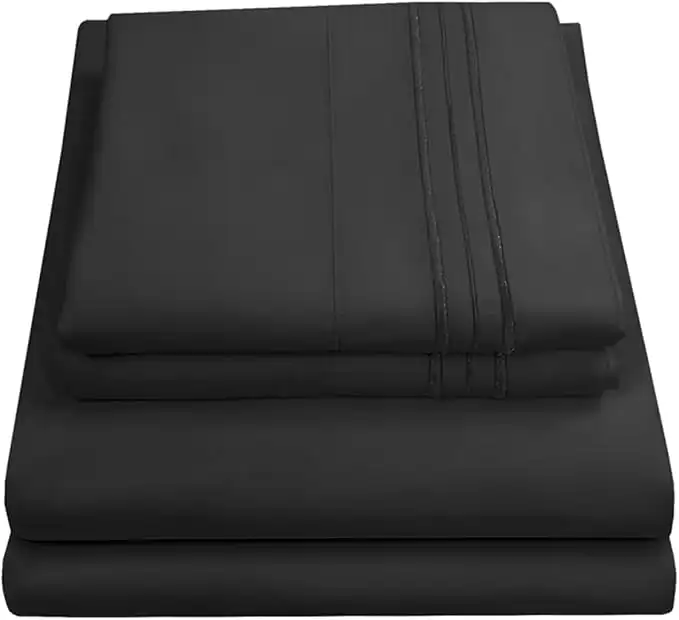 1800 Thread Count Sheet Set – Soft Egyptian Quality Brushed Microfiber Hypoallergenic Sheets – Luxury Bedding Set with Flat Sheet, Fitted Sheet, 2 Pillow Cases, Queen, Black — Price History & Tracker | DeserTracker