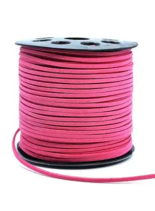 2.6mm Fuchsia Suede Cord, 100 Yards Flat Faux Leather Cord for Necklaces, Bracelets, Jewelry Making, Beading and DIY Crafts