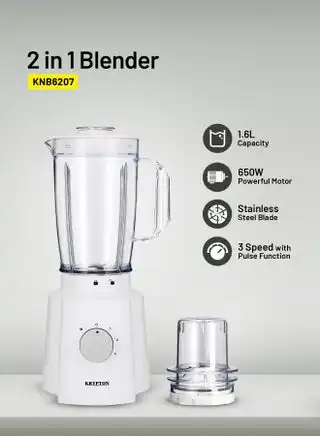 2 In 1 Blender With 3 Speed With Pulse Function, Stainless Steel Blade, Safety Interlock 1.6 L 650 W KNB6207N White — Price History & Tracker | DeserTracker