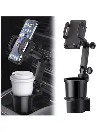 2-in-1 Car Cup Holder & Phone Mount – Universal Adjustable Auto Stand with 360° Rotation & Expandable Drink Holder – Secure Fit for Most Vehicles & Phones
