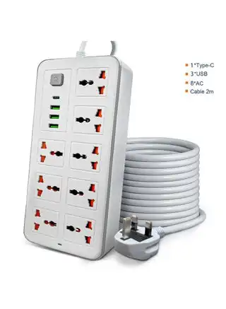 2 Meters Universal Extension Lead with Multiple Function UK Plug 3 Pin Socket Outlet with 8 Gang 3 USB Port 1 Type-C Port 2M Electric Socket Mains Strip for Home Kitchen and Office — Price History & Tracker | DeserTracker