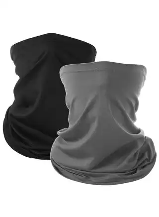2 Pack Breathable Cooling Neck Gaiters, Ice Silk Face Shield Scarf, Multifunctional Headwear Bandana Face Cover,UV Protection Headband Scarf,Reusable Stretchy Balaclava (Black+Gray)a