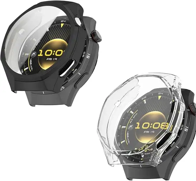 [2 Pack] Case Compatible with Huawei Watch GT 6 Pro (46mm) Screen Protector Full Coverage Hard PC Bumper Protective Face Cover for Huawei Watch GT6 Pro Accessories (Transparent+Black)