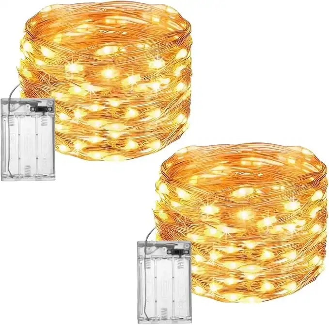 amazon.ae[2 Pack] Fairy Christmas Diwali Lights Battery Operated, 10M/33ft/100 LED Warm White String Light, Waterproof Battery Case, Indoor Lights for Xmas Tree Wedding,Party Events Garden Spring Decoration