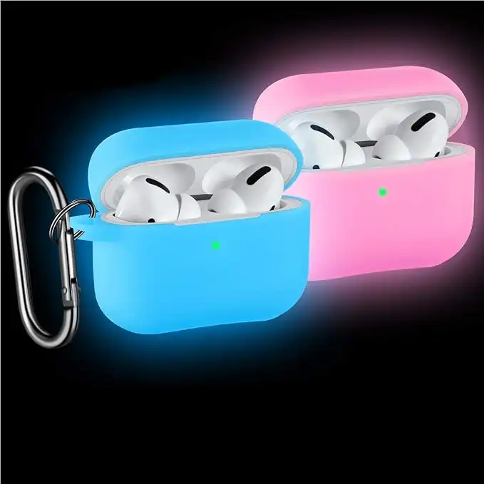 amazon.ae[2 Pack] SNBLK Designed for Airpods Pro Case Cover Silicone Protective Charging Case Skin with Keychain Compatible for Apple Airpods Pro 2019, (Front LED Visible) Glow Pink/Glow Blue