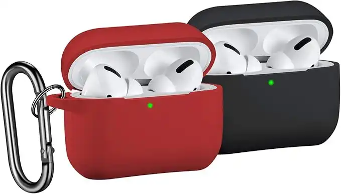 [2 Pack] SNBLK Designed for Airpods Pro Case Cover Silicone Protective Charging Case Skin with Keychain Compatible for Apple Airpods Pro 2019, (Front LED Visible) Black/Red