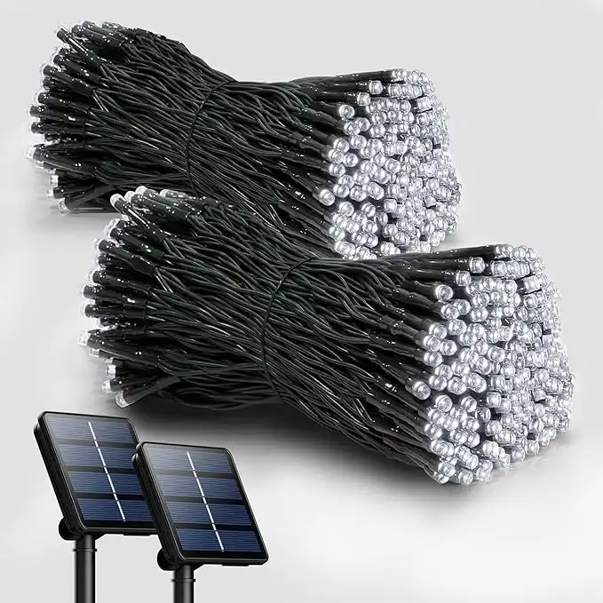 amazon.ae2 Pack Solar String Lights Outdoor, 200 LED Extra-Long 72FT Solar Powered Lights with 8 Lighting Modes, Waterproof Outdoor Lighting Decoration for Garden, Patio, Balcony, Xmas, Wedding, Party