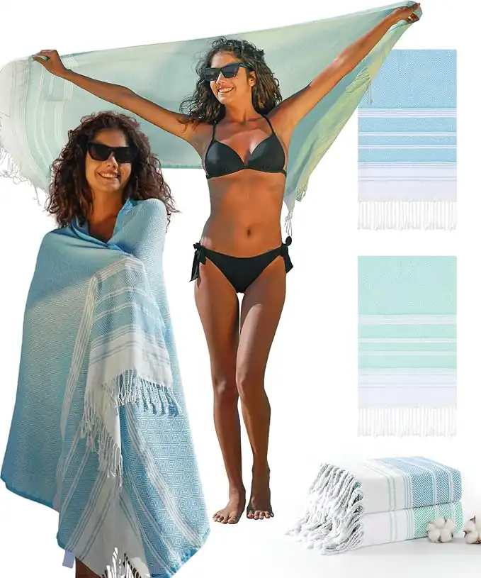 amazon.ae2 Packs Cotton Turkish Beach Towels Quick Dry Sand Free Oversized Extra Large Xl Big Blanket Bath Pool Swim Towel Adult Travel Essentials Cruise Accessories Must Haves Clearance Vacation Stuff