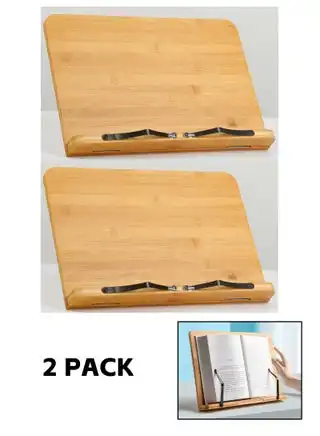noon.com2 Pieces Bamboo Book Stand, Sturdy Large Cookbook Magazine iPad Reading Book Holder with 6 Adjustable Height Gear Angle, Foldable Tablet Textbook Bookstand, Tray and Page Paper Clips (33.5*23.5CM)