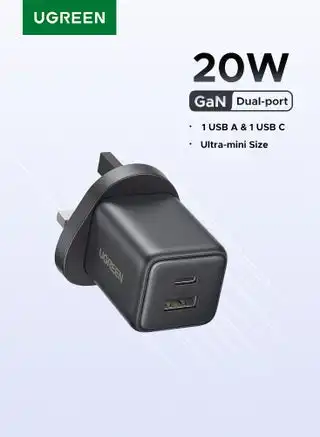 noon.com20W Charger USB Type C GaN Dual Ports 1C1A Fast Charging iPhone Charger Adapter Safe Charging And Portable Size Compatible With iPhone 16, 15 Series Tablet, Apple Watch, AirPods, DJI Pocket, Samsung -