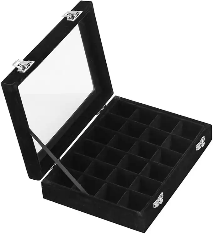 24 Section Velvet Glass Jewelry Ring Display Organiser Box Tray Holder Earrings Storage Case (Black) — Price History & Tracker | DeserTracker