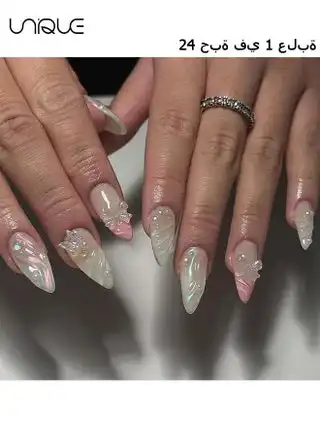 24Pcs Fake Nails, Press Nails, Long Almond Manicure - Shiny Pink Pearl Water Ripple Manicure - 3D Butterfly Manicure - Fake Nail Patch — Price History & Tracker | DeserTracker