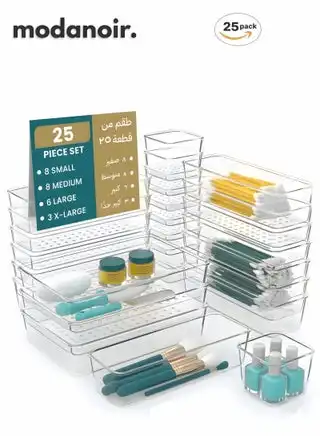 25 PCS Clear Plastic Drawer Organizers Set (4 Sizes) Plastic Storage Trays for Kitchen Utensils, Makeup, Bathroom, Vanity, Office Desk, and Dresser Drawers — Price History & Tracker | DeserTracker