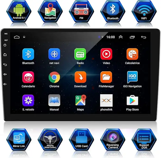 amazon.ae26cm 2 DIN Android 9.1 Car Stereo Internet Multimedia Car Radio GPS Navigation 1080P HD Touch Screen Bluetooth Hands-Free Calling+WiFi/BT Tethering Internet+Rear View Camera+Double USB