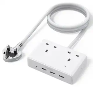 noon.com2990W Power Strip Home Extension Plug With 2AC Ports 3A1C Fast USB Charger 20W With 1.5M Extension Cable Charging Station Space Saving Suitable for Living Room Bed Room Kitchen Outdoor