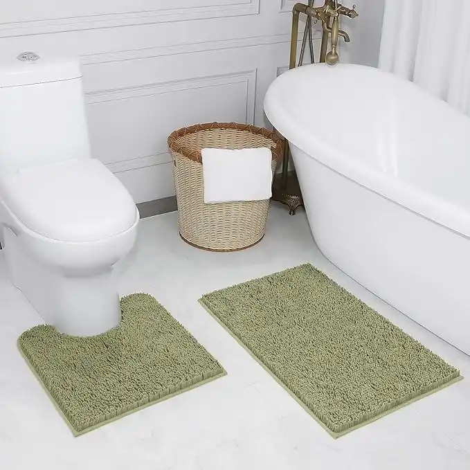 2pc Non-Slip Shaggy Chenille Bathroom Mat Set, Includes 20 x 20 Inches Toilet Contour Rug and 32 x 20 Inches Bathmat, Water Absorbent Carpet, Sage Green — Price History & Tracker | DeserTracker