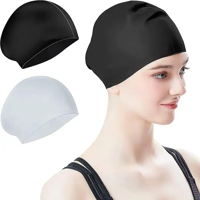 2Pcs Waterproof Swimming Caps with Good Sealing,Silicone Swim Cap, Durable Silicone Swimming Hats with Internal Non-slip Texture Design for Adult Men Women Long Hair, Keep Your Hair Dry