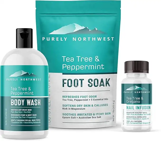 amazon.ae3 in 1 Professional Foot Spa Kit-with Tea Tree Foot & Body Soak-Tea Tree Body Wash & Nail Blend-Soothes Dry, Burning & Itchy Skin-Refreshes Unwanted Foot Odor-Restores Unhealthy Nails-Purely Northwest