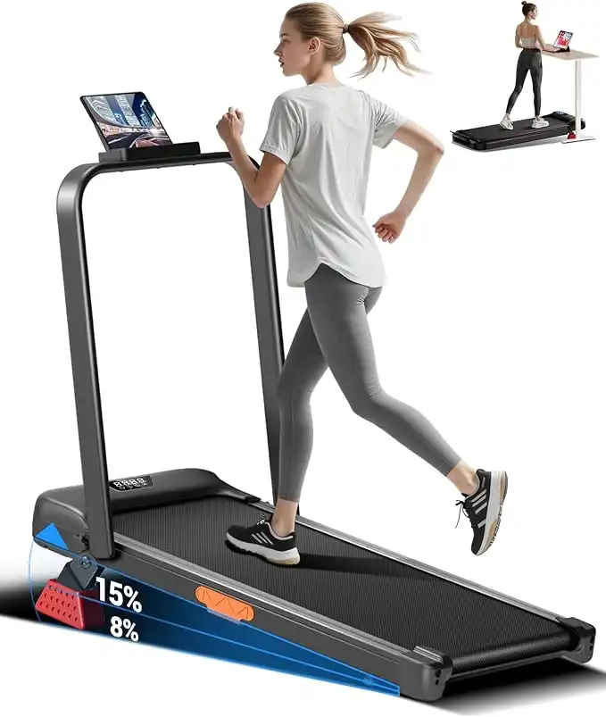 amazon.ae3-in-1 Walking Pad Treadmill with Handle Bar 2.5HP Walking Pad with 15% Incline 1-10km/h Foldable Treadmill for Home 136KG Weight Capacity with Remote Control & LED Display