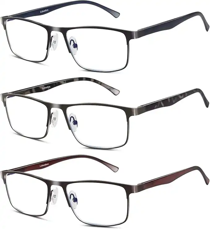 3 Pack Blue light Blocking Reading Glasses for Men, Stylish Metal Frame Readers — Price History & Tracker | DeserTracker