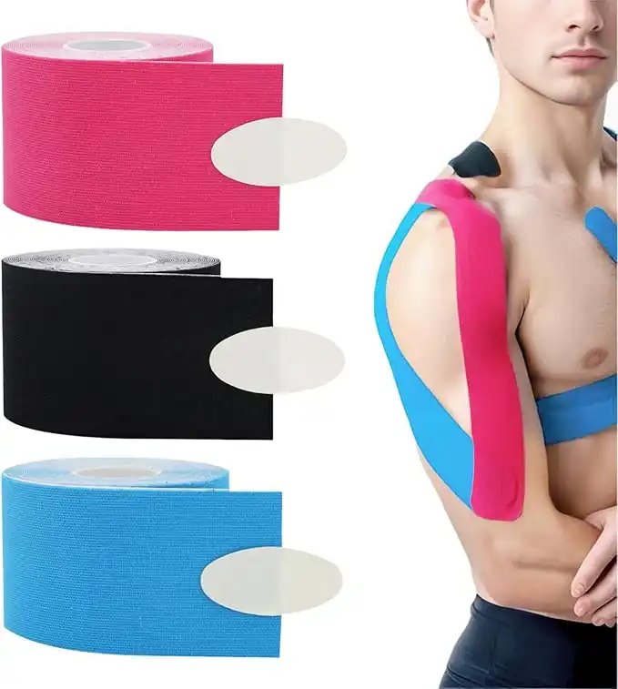 3 PCS Kinesiology Tape, Sports Tape, Cohesive Wrap, Length 5m, Latex Free, Cotton, Breathable, Elastic, Waterproof Tape for Athlete, Trainers, Muscles Joints, Fitness, Pain Relief