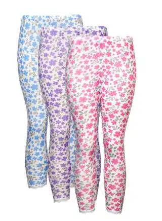 3 - Pieces Full Length inner Leggings with Elasticized Waistband Women white Floral