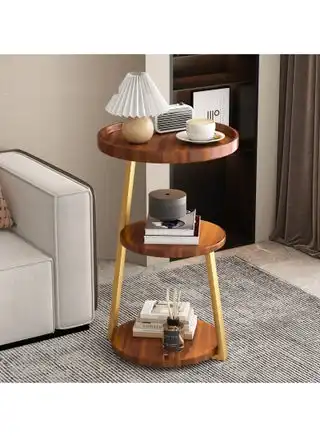 3-Tier Walnut Grain Round Modern Side Table Metal Frame Side Table Corner Sofa Table Bedside Table for Living Room Bedroom Balcony — Price History & Tracker | DeserTracker
