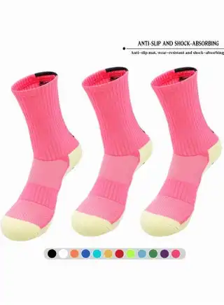 (3 أزواج) جوارب رياضية احترافية مضادة للانزلاق للرجال والنساء | جوارب ضاغطة ماصة للرطوبة لتدريبات كرة القدم والجري وركوب الدراجات