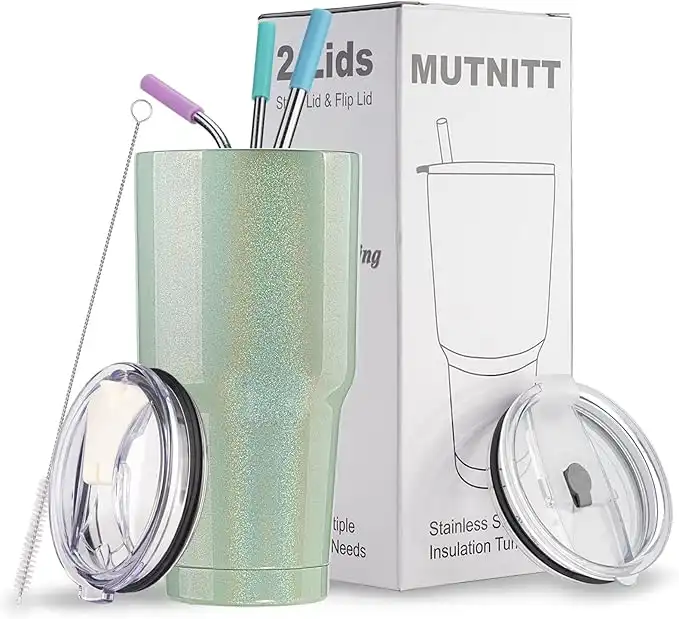 amazon.ae30 oz Tumbler with Lids and Straws,18/8 Stainless Steel Vacuum Insulated Coffee Tumbler,Insulated Travel Mug Water Cup with Leak-Proof Straw Lid & Flip Lid,3 Metal Straws,1 Cleaning Brush & Gift Box