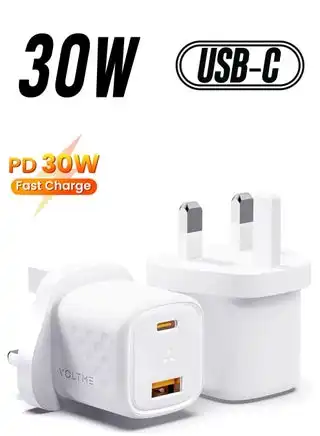 noon.com30W GaN3 Fast Wall Charger – Dual Port USB-C & USB-A PD 3.0 Power Adapter, Compact Type-C Fast Charging Plug for iPhone Air, 17/16/15/14/13/12, iPad, MacBook Air, Samsung S25/S24/S23 Ultra, Pixel, Tablets & AirPods (White)
