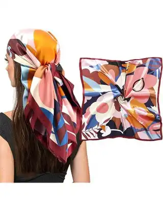 noon.com35 Inch Square Silk Head Scarf - Fashion Silk Head Scarf For Women - Silk Textured Scarf, Suitable For Wrapping Hair At Night And Sleeping.