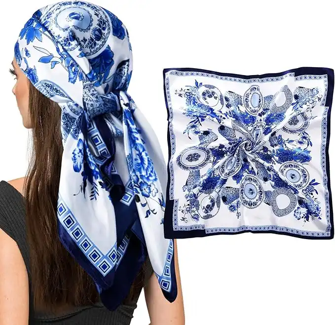 35" Square Silk Like Head Scarf - Women's Fashion Silk Feeling Scarf for Hair Wrapping and Sleeping at Night