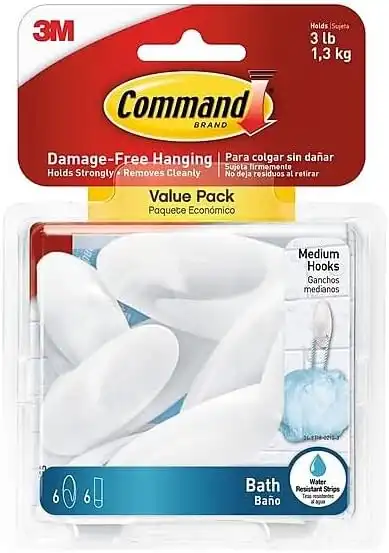3M Command Medium Wall Hooks, Damage-Free Hanging With Adhesive Strips for Back to School Dorm Organizers, 7 Clear Hooks and 12 Command Strips