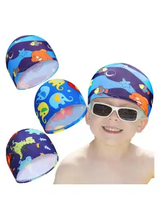 3Pcs Unisex Polyester Swimming Hats for Kids - Summer Bathing Caps for Boys & Girls (Long/Short Hair)