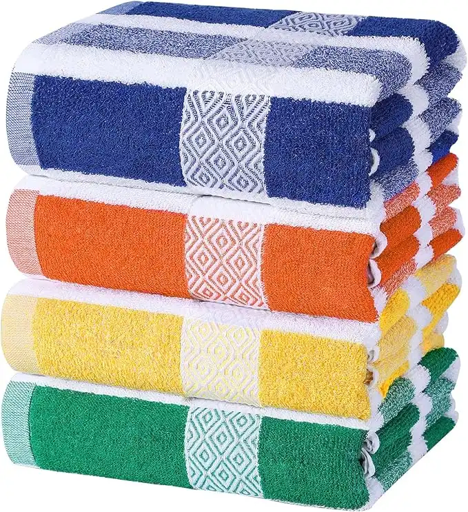 amazon.ae4 Pack Stripe Beach Towel Thin Terry with Towel Bands Set Oversized Extra Large Big Cotton Soft Super Absorbent Travel Pool Swim Clearance Towels Blanket Men Women Adults Gift Quick Dry Green Yellow