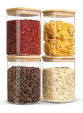 noon.com4-Piece Set of Square Glass Storage Jars with Wooden Lids, 1100ML/37OZ Airtight Food Containers, Preservation Jars & Storage Boxes for Pasta, Flour, Grains, Spices, Tea, Coffee Beans, & Other Kitchen Staples - Perfect for Long-Term Food Preservation & Organization