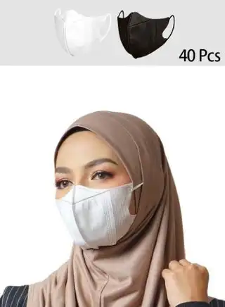 40-Pack 3D Disposable Masks, Unisex Adult 3-Layer Meltblown Filter Masks with Elastic Ear Loops - (White, Black, 20 Each)