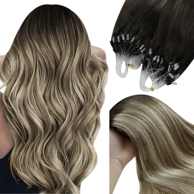 amazon.ae(41cm , Darkest Brown to Chestnut Medium Brown Mixed Light Gloden Blonde) - YoungSee 41cm Remy Micro Ring Hair Extension Darkest Brown to Chestnut Medium Brown Mixed Light Gloden Blonde Micro Beads...