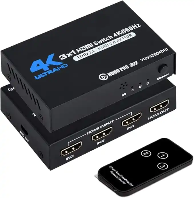 4K@60Hz HDMI Switch, NEWCARE HDMI Switch 3 in 1 Out with Remote Control, 3-Port HDMI Switcher Selector, Supports 4K, 3D, HDCP2.2, HDMI2.0, HDR, for Fire Stick, HDTV, PS4/5, Game Consoles, PC