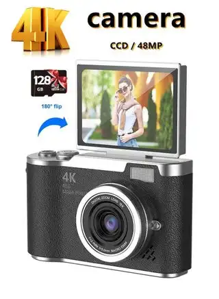 noon.com4K CCD Digital Camera for Student 48MP Compact Digital Photography Camera 8X Digital Zoom 180°Flip Screen Selfile Camera