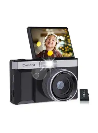4K CCD Digital Camera for Student 96MP Compact Digital Photography Camera 8X Digital Zoom 180°Flip Screen Selfile Camera (Classic Black) — Price History & Tracker | DeserTracker