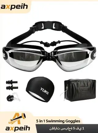 noon.com5-in-1 Anti-Fog Swimming Goggles - Swimming Goggle Set with Swimming Cap, Ear Plugs, Nose Clip, Leak-Proof Swimming Goggles, and Inflation Bag - Waterproof Swimming Goggles that Effectively Block UV Rays - Suitable for Men and Women (Black)