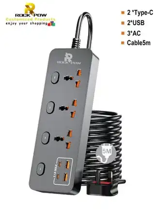 noon.com5 meters Universal Extension Lead with Multiple Function UK Plug 3 Pin Socket Outlet with 3 Gang 2 USB Port 2 Type-C Port 5M Electric Socket Mains Strip for Home Kitchen and Office 5 meters