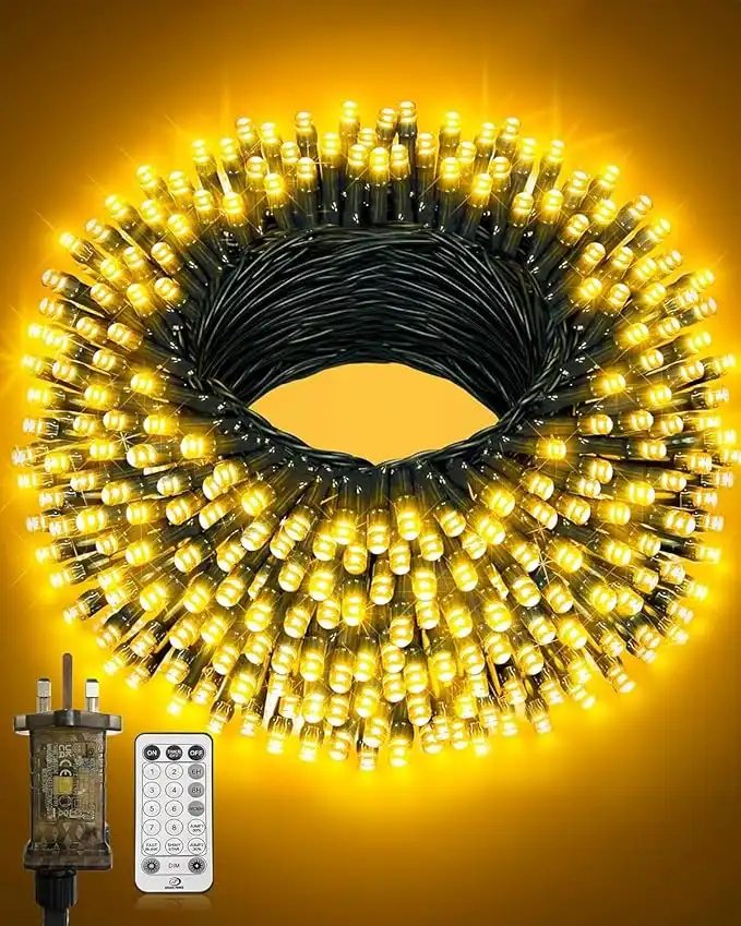50 m 500 LED Fairy Lights Plug in String Light with Remote Timer 8 Lighting Modes Green Wire IP44 Waterproof for Ramadan Eid Diwali Christmas Tree Garden Decorations (Warm White)