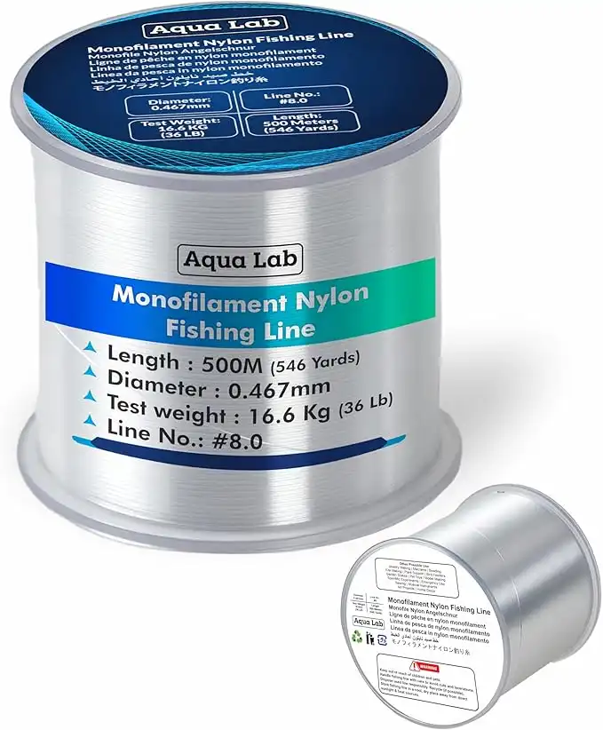500m Aqua Lab Clear Nylon Fishing Line Wire - Monofilament and Fluorocarbon Thread - Line No 08, 0.467mm Diameter, 16.6kg Test Weight, Transparent Multi-Use Line for Fishing, DIY Crafts & Gardening — Price History & Tracker | DeserTracker